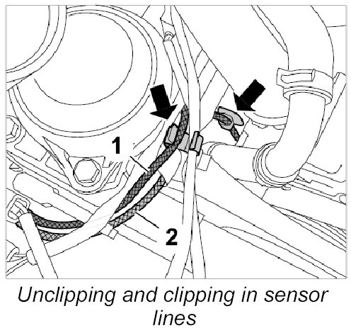 1.2. Unclip lines for sensors from the brackets -2, 4-.