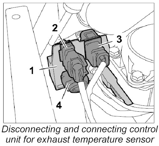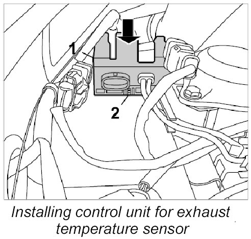 1.1.1. Insert exhaust temperature sensor control unit, then latch retaining lugs into the cut-out -2-.