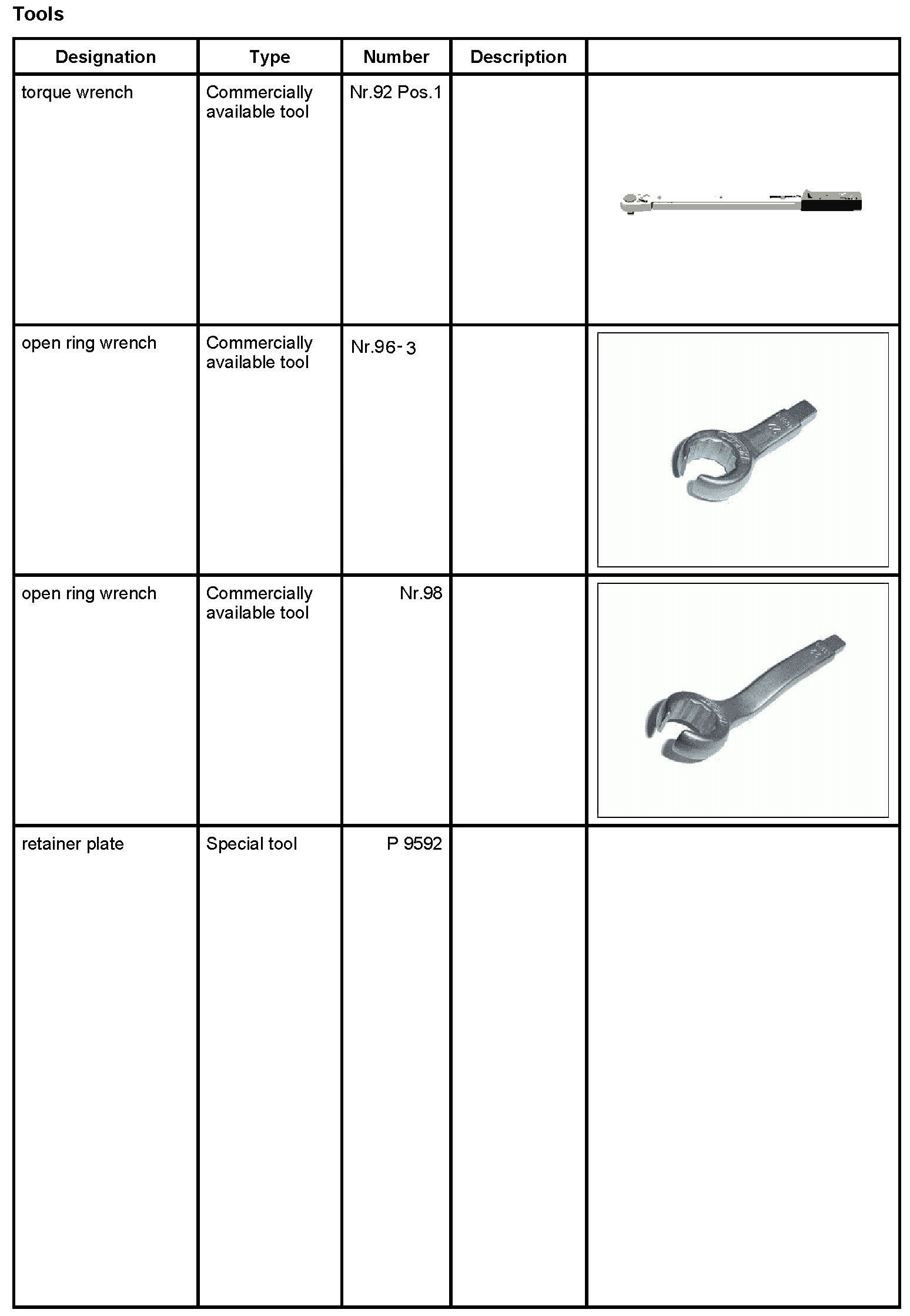 Raise engine into installation position with a jack, using retainer plate P 9592 to do this. Screw in and tighten M12 collar nuts.