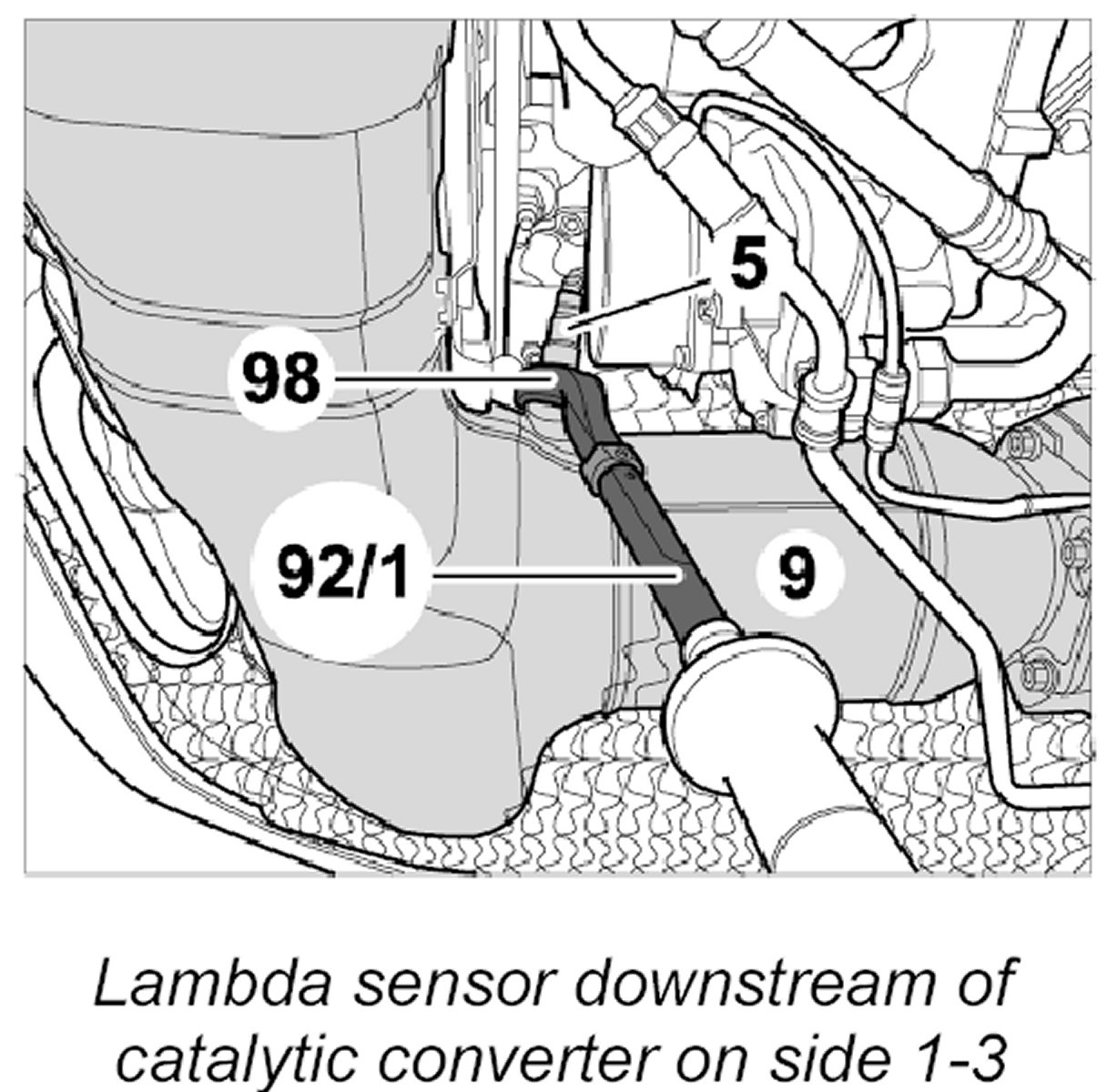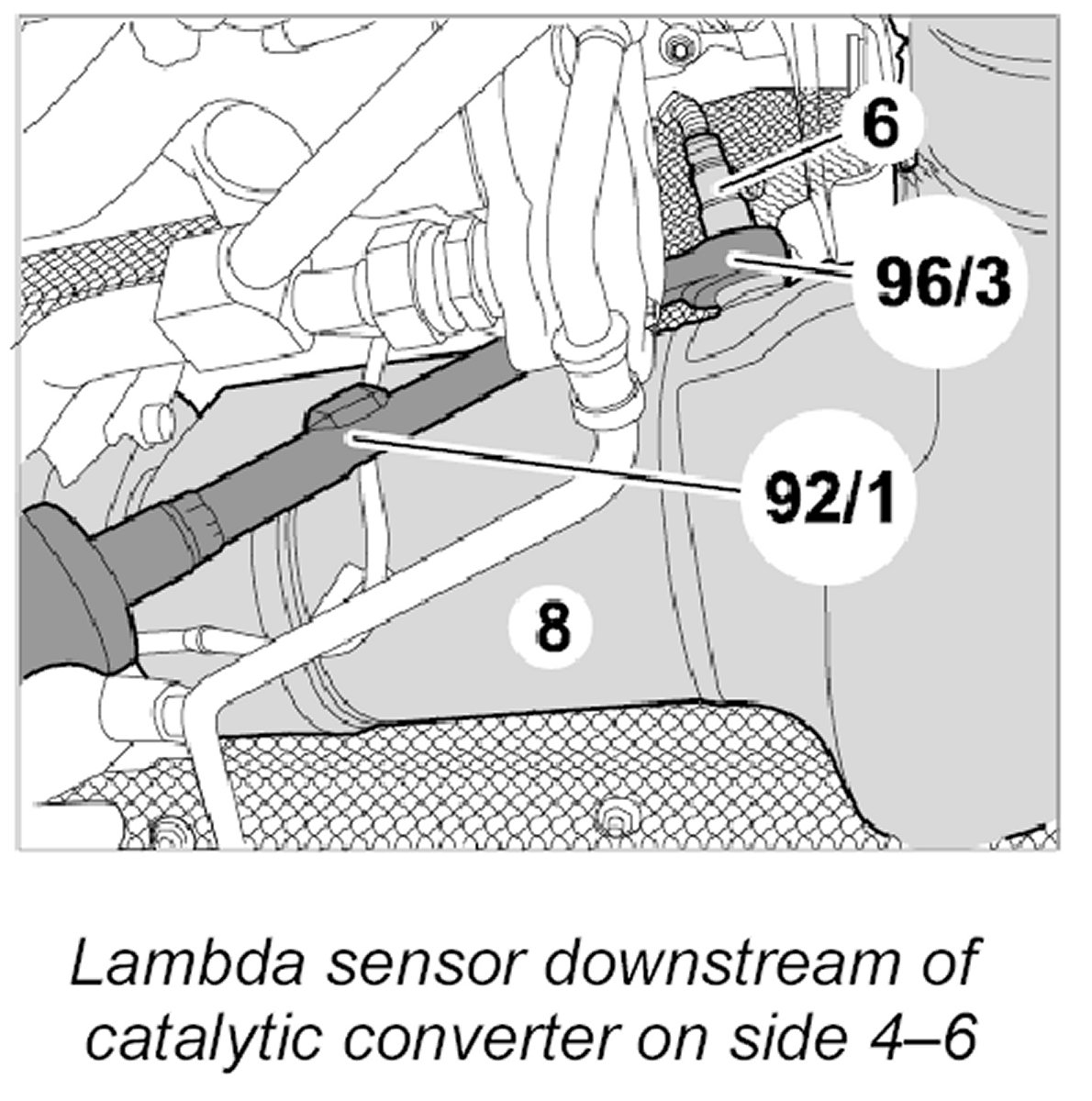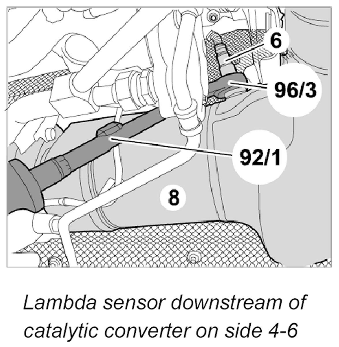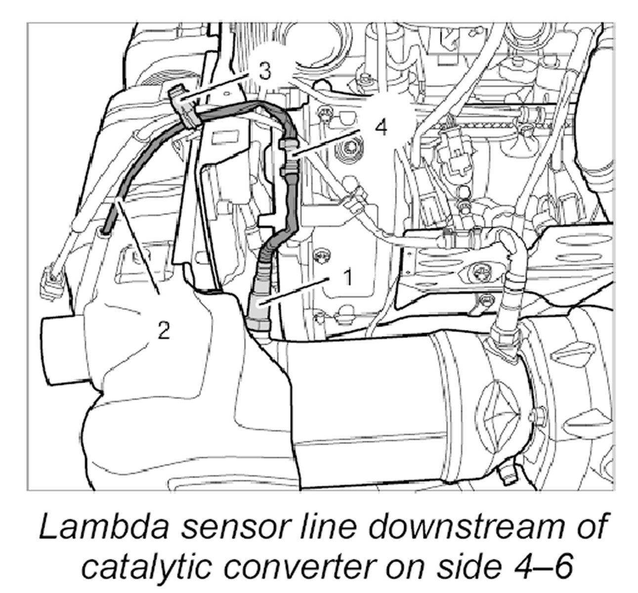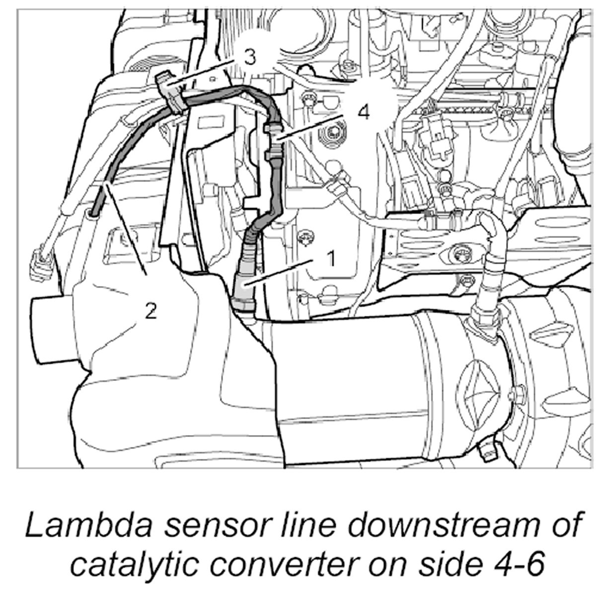 4.1. Remove lambda sensor downstream of catalytic converter on side 4-6.