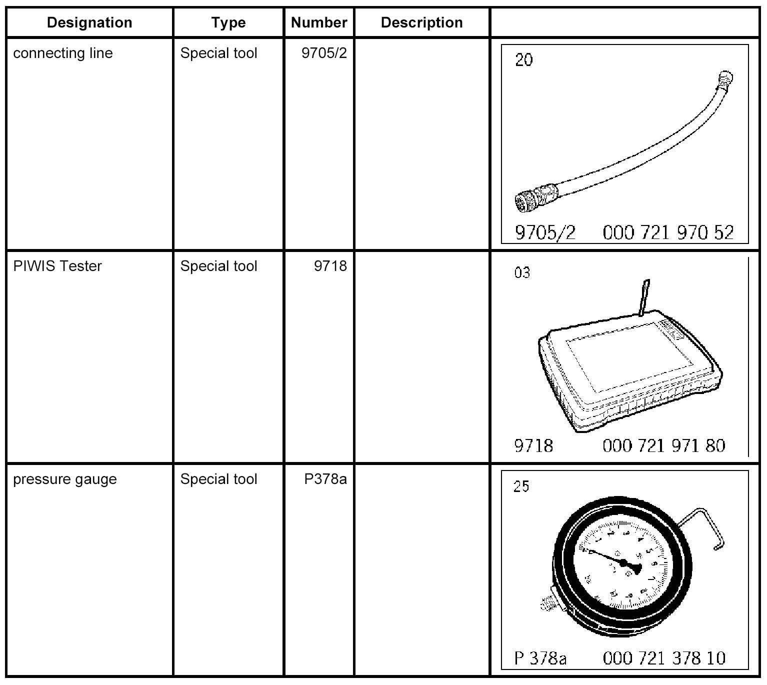 Nominal value with the engine off: 3.9 ± 0.3 bar