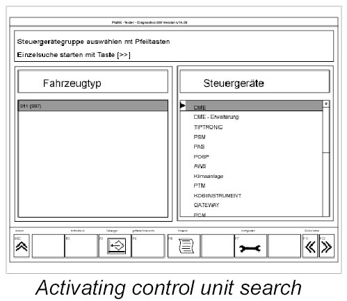 7. Run the individual control unit search for the engine control unit. To do this, select DME with the tracer pen and press F12>>.