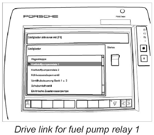 8. Select the Drive links item and then select fuel pump relay 1 with the tracer pen.