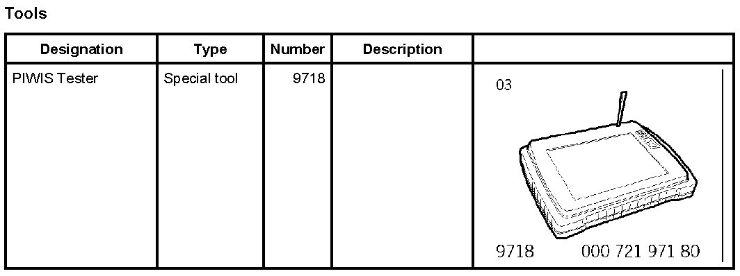 - The PIWIS Tester 9718 instructions take precedence since the description may be different. This may be due to more recent software versions.