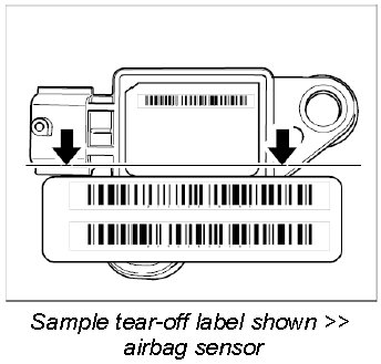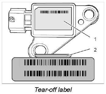 INFORMATION: If a new component (e.g. sensor, airbag control unit, airbag unit) of the airbag system has to be installed, the new component will be supplied with a barcode sticker (tear-off label).