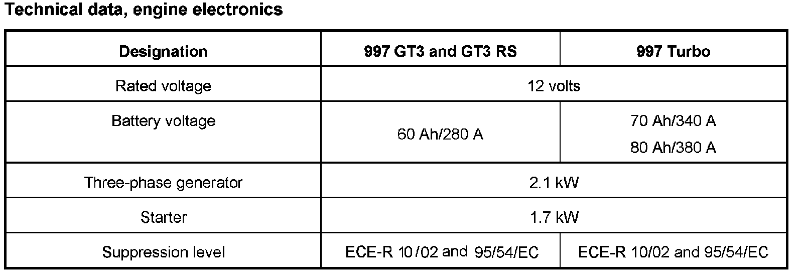 Technical Data, Engine Electronics: