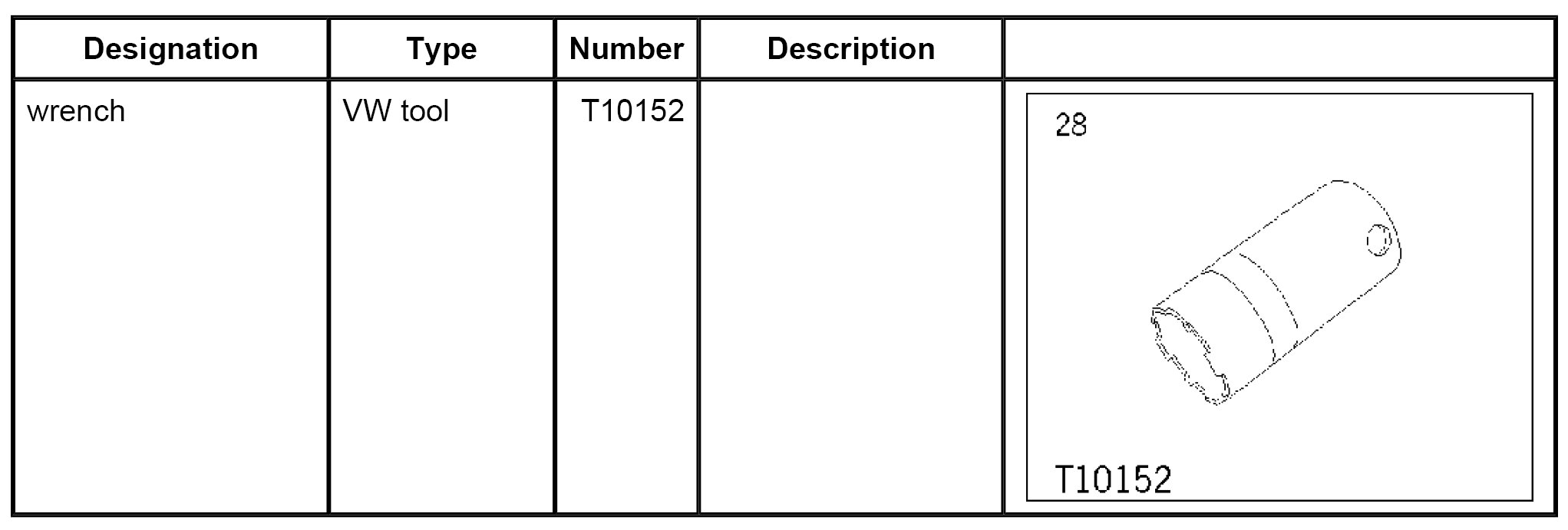 2. Position ignition switch in the instrument panel from below. Position union nut, re-adjust switch and tighten union nut using wrench T10152. Tightening torque: 1.1 ftlb.