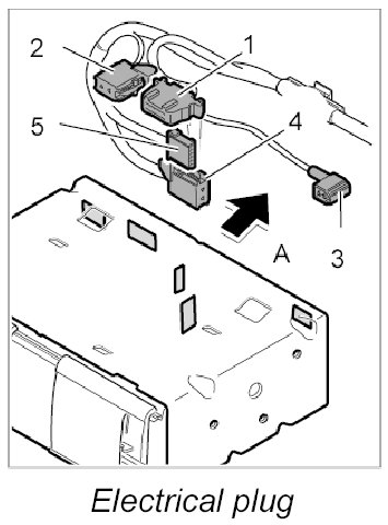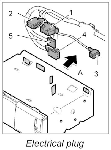 2. Unlock the electrical plug -1, 2, 3- on the navigation unit and pull out the navigation unit.