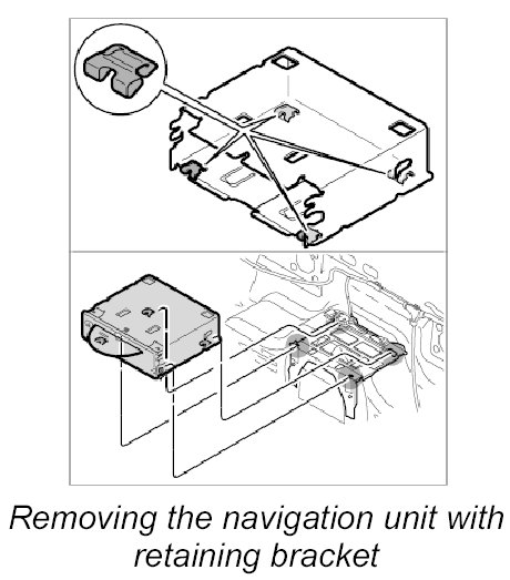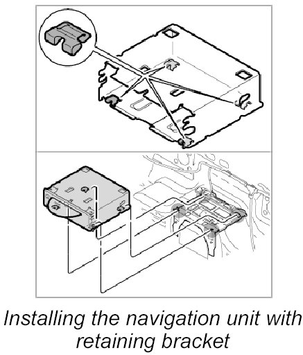 - If the navigation unit is removed with the retaining bracket, then new clips must be used before reinstallation.