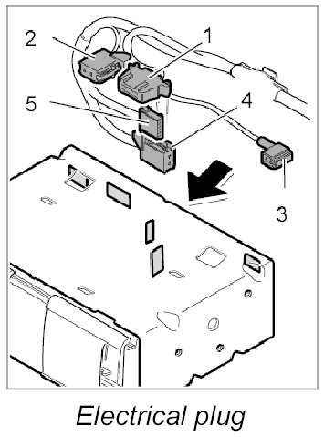 2. Push in electrical plug connections -1, 2, 3- until plugs are felt to engage.