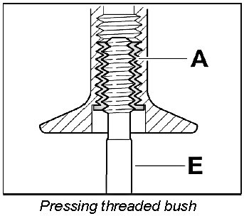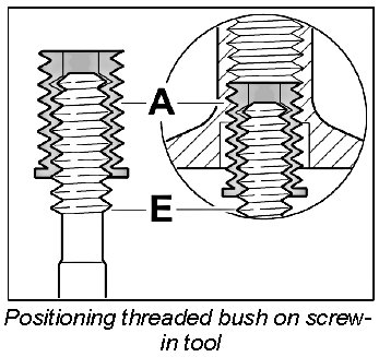 Screw threaded bush A in fully (note bush length classification) using the screw-in tool E.