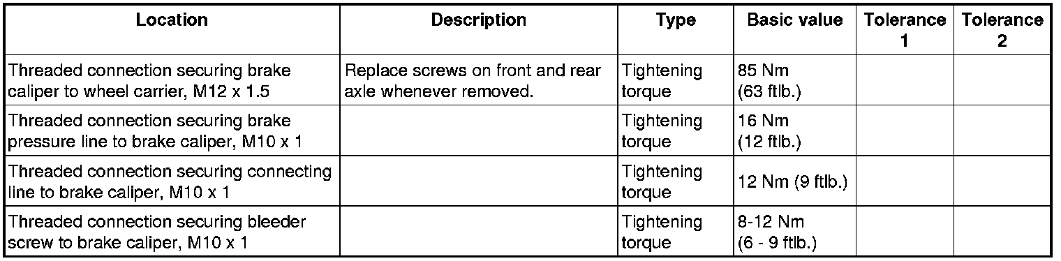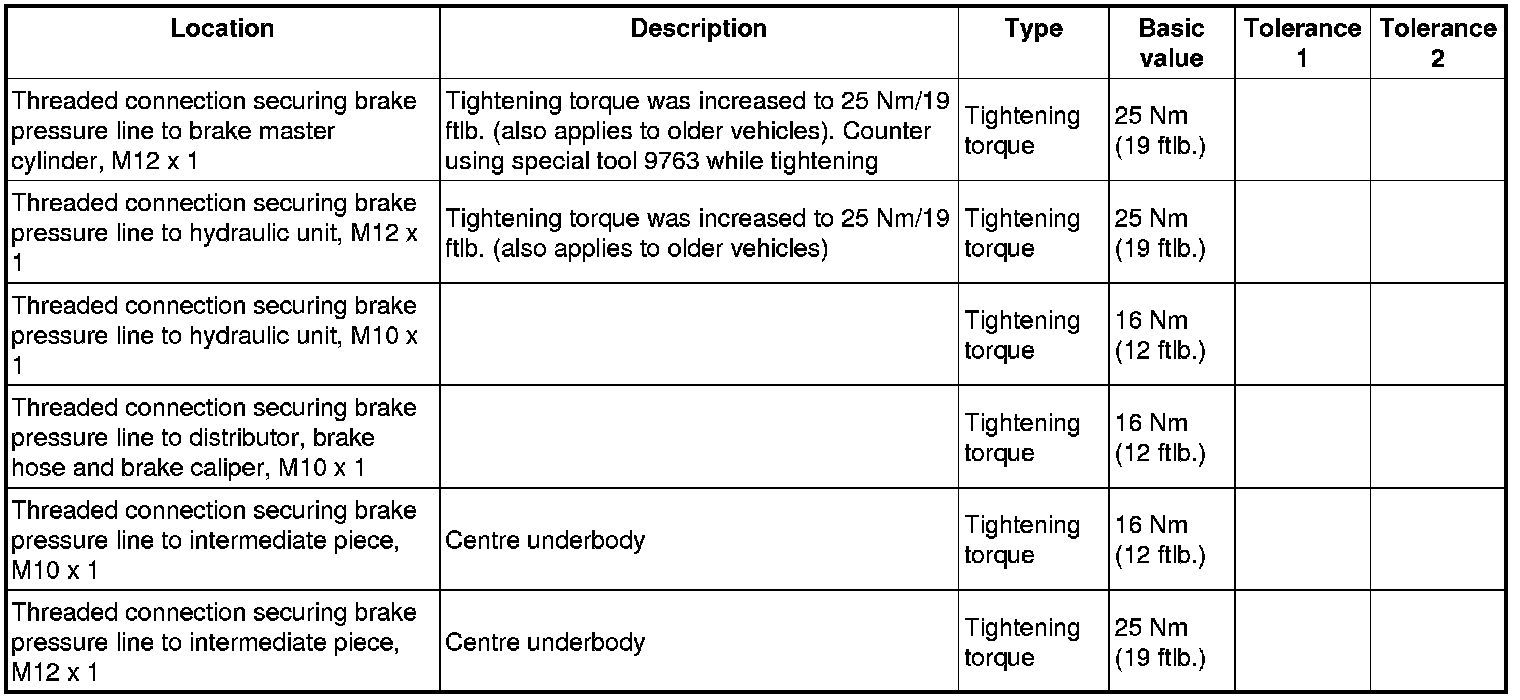 WM 4700TW Tightening torques for brake hydraulics