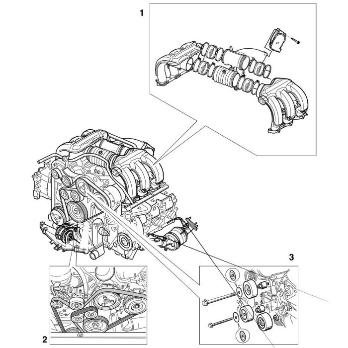 Overview of intake system, belt drive