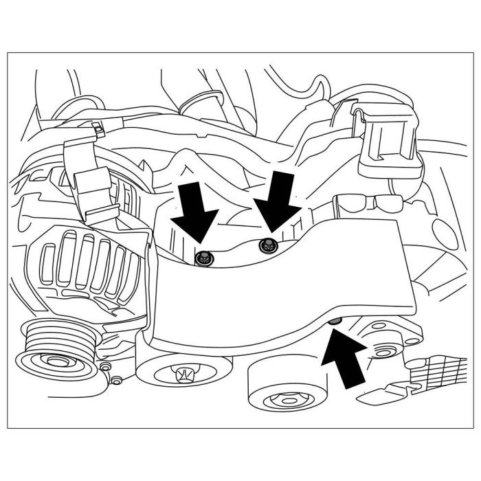 11. Remove drive belt cover by unscrewing three Torx screws (M6 x 12) -Arrows-.