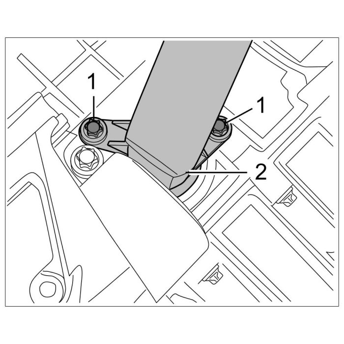 18. Remove power-steering pump support -2- by unscrewing four Torx screws (M8 x 35) -1-. The power-steering pump support -2- is also fixed with roll pins; if necessary use a rubber hammer for the removal.