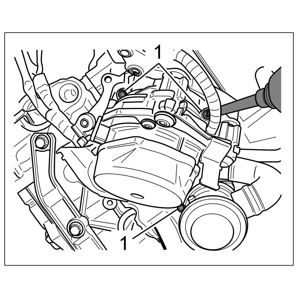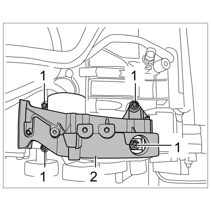 25. Unscrew three Torx screws (M6 x 20) -1- on the bracket for the secondary air pump.