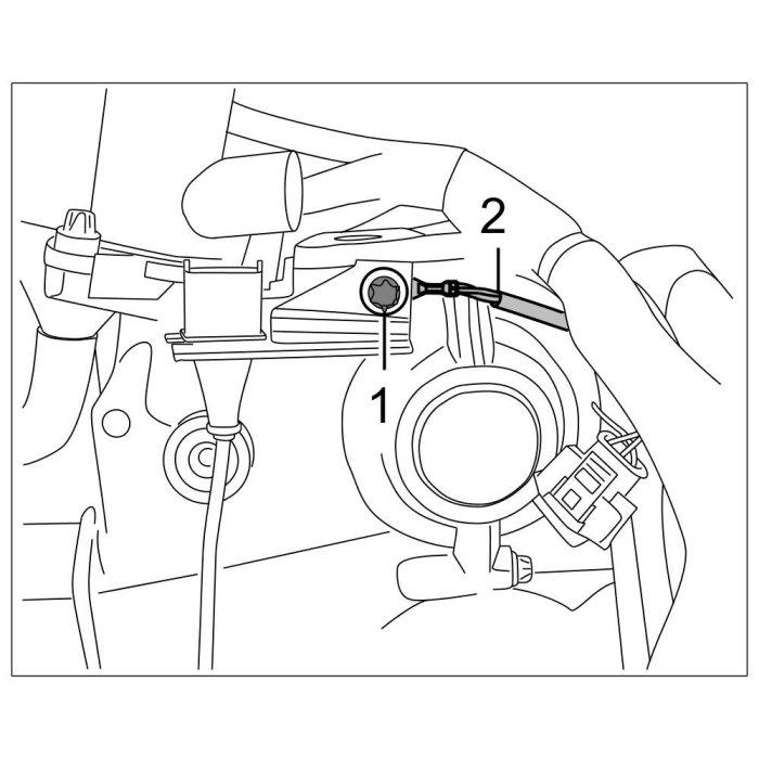 28. Remove knock sensors -2- by unscrewing one Torx screw (M8 x 35) on each -1-. Mark the position of the electric connection for re-installation.
