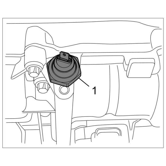 2. Drain engine oil. Unscrew the oil drain plug (hexagon socket a/f 8) -> 170155 Engine oil and oil filter change Removal and Replacement.