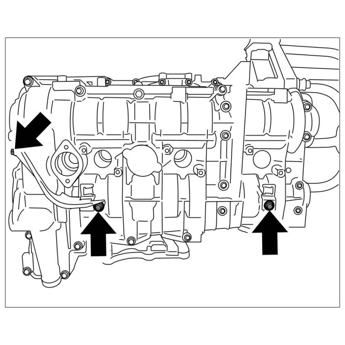 47. Remove coolant adapter by unscrewing six Torx screws (M6 x 20) -Arrows-. Replace metal seal during installation.
