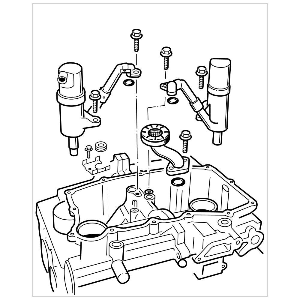 67. Remove air/oil separator (swirl pots) and oil suction pipe. To remove each separator, unscrew two M6 x 20 Torx screws and pull out the separator. Unscrew two M6 x 20 Torx screws on the oil suction pipe and remove the oil suction pipe. Replace O-rings during installation.