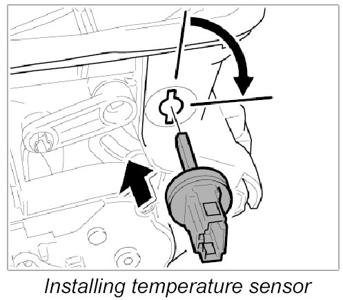 2. Insert temperature sensor into the heating/fresh air unit and turn through 90 degrees.