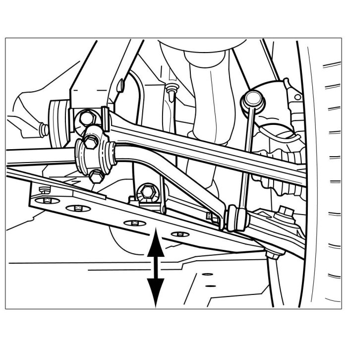- Measure from road contact surface to hexagon-head bolt on cross-member threaded connection to the body.