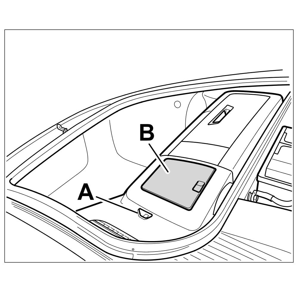 1. Disengage and remove cover over brake fluid reservoir -B-.