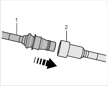 1.2. Once you have released the plug-in coupling (by inserting the loosening tool), pull the lines apart -arrows-.