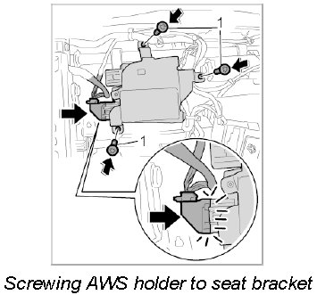 2. Position AWS holder on the seat bracket and screw it down using the three fastening screws -1-.