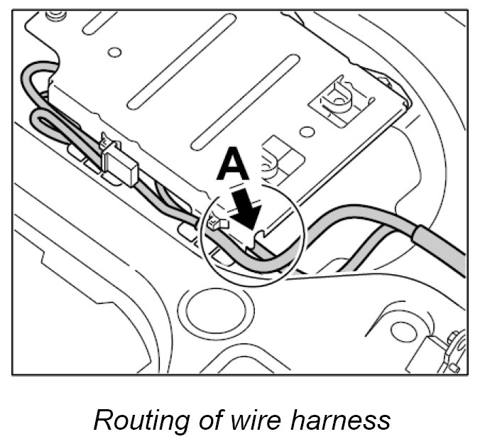 The wire harness must not be routed over the cover, but should be laid along side the cover -A-.