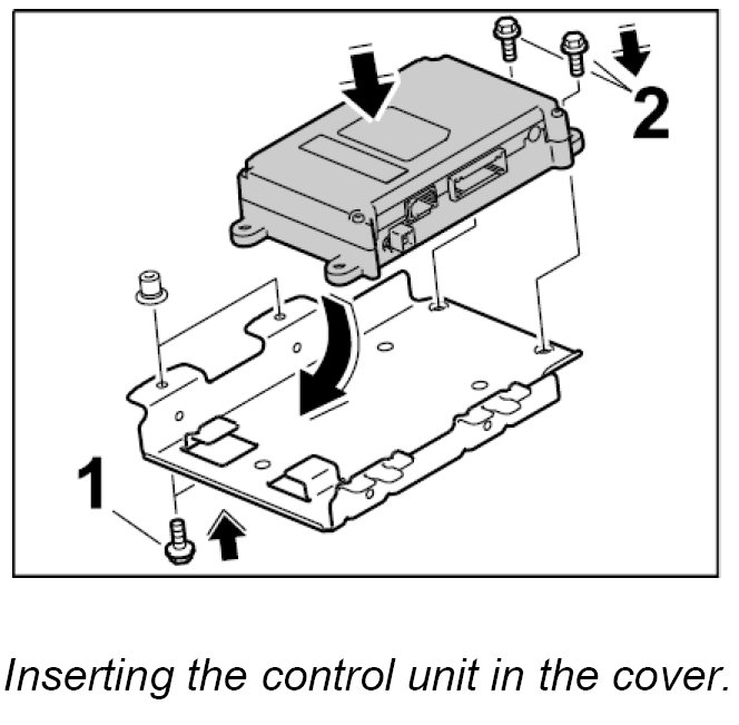 1. Insert control unit into the cover and screw tight with the two fastening screws -2-. Tightening torque: 2 Nm (1.5 ftlb.)