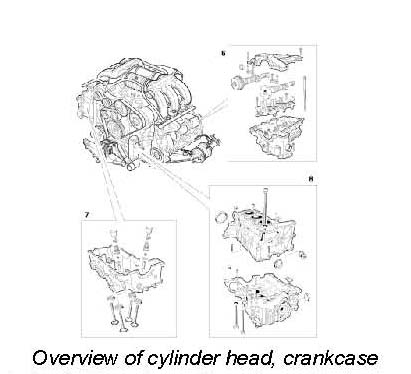 ^ 6 - Cylinder-head cover, camshafts, flat-base tappet housing, cylinder head