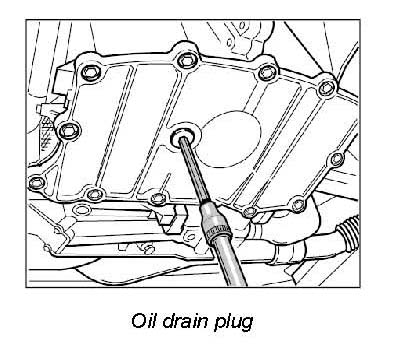 2. Drain engine oil. Unscrew the oil drain plug (hexagon socket a/f 8) 170155 Engine oil and oil filter change.