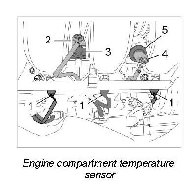 5. Disconnect cable plug -4- of engine-temperature sensor -5-.