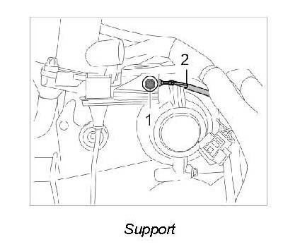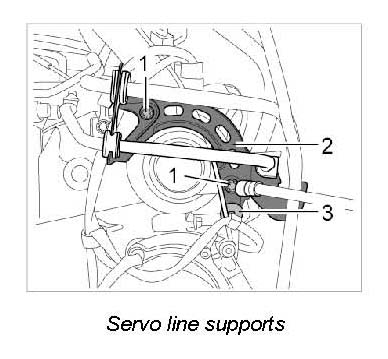 8. Loosen support for servo lines -2- by unclipping the oxygen sensor line from the support -3- and unscrewing two Torx screws (M6 x 12) -1-.