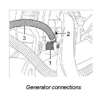 13. Unscrew collar nut (M8) -2- and remove ground B+ line -3-.
