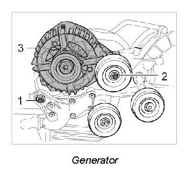 14. Remove generator -3- by unscrewing the Torx screws (M10 x 35) -1- and (M10 x 145) -2-. The deflection roller is removed together with the generator ( -3- ).
