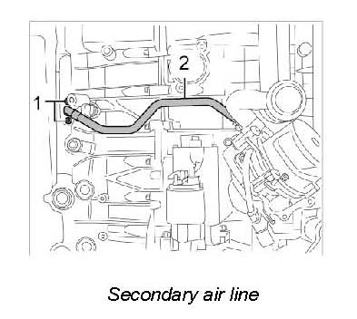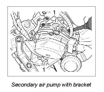 25. Unscrew three Torx screws (M6 x 20) -1- on the bracket for the secondary air pump.