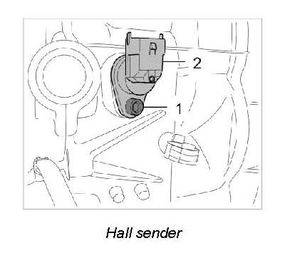 33. Remove both hall senders -2- by unscrewing one Torx screw (M6 x 11) on each -1-. Replace O-rings during installation.