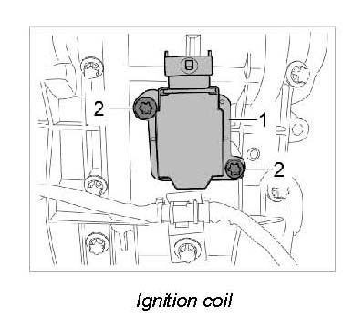 40. Remove ignition coils -1- by unscrewing two Torx screws (M6 x 25) -2-.