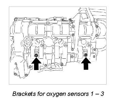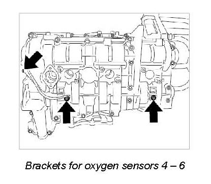 48. Remove brackets for oxygen sensor cables by unscrewing five Torx screws (M6 x 12) -Arrows-.