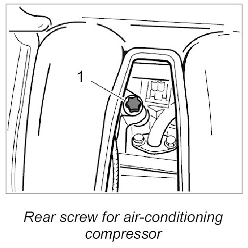 3. Unscrew rear Torx screw for air-conditioning compressor (M8 x 120) -1- between the pipes of the intake system.