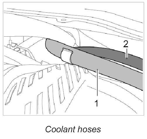 6. Unclip refrigerant hoses -1- and -2- between body and intake-air distributor.