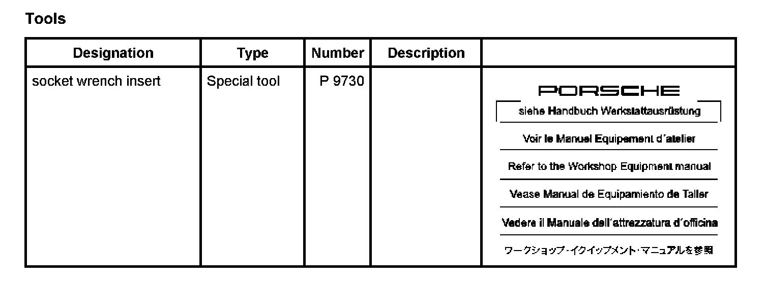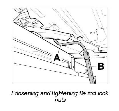 Use special tool (socket wrench insert) P 9730 -A- together with a torque wrench -B- to loosen and tighten the tie rod lock nut(s). The tightening torque of 50 Nm (37 ftlb.) for the tie rod lock nut(s) corresponds to a value of approx. 32.5 Nm (24 ftlb.) when using a socket wrench insert P 9730.