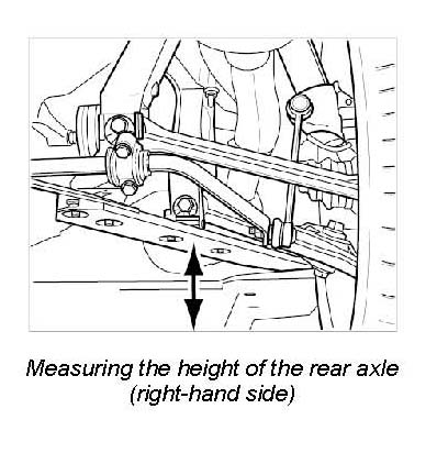 Before wheel alignment values are adjusted at front and rear axles, it is recommended that the vehicle height be checked at the DIN empty weight. Conclusions can then be drawn about wheel alignment values in the event of any suspension alignment that becomes necessary later.