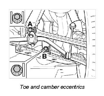 After adjusting, tighten the lock nut of the toe eccentric to the prescribed tightening torque.