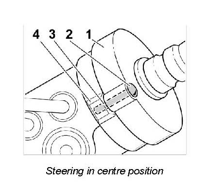 Preliminary work: Check whether the steering wheel is displaced with respect to the steering gear. To do this, center the steering gear as described below.