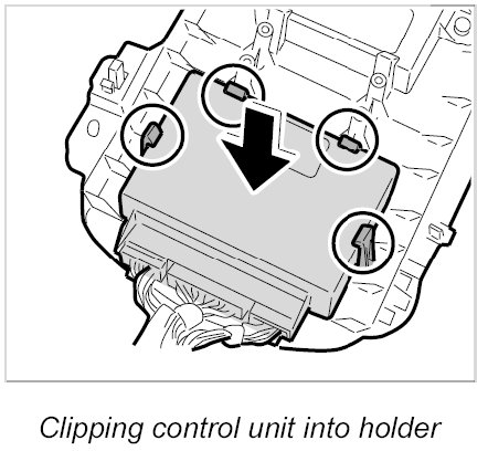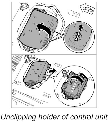3. Press the four retaining clips carefully back and take the control unit out of the holder.