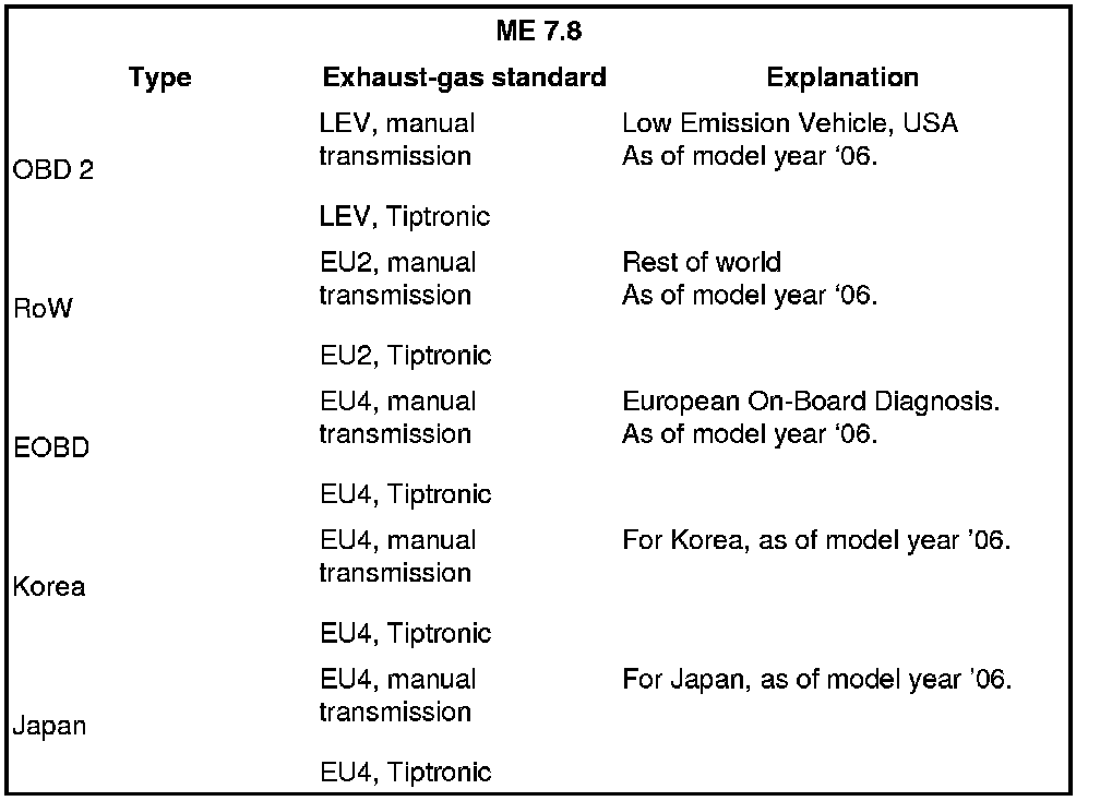 In some countries (currently USA, Canada) the Ready status must be obtained following a test drive or by using the Porsche System Tester after the DME control module has been programmed. If in doubt about this, contact the relevant importer.