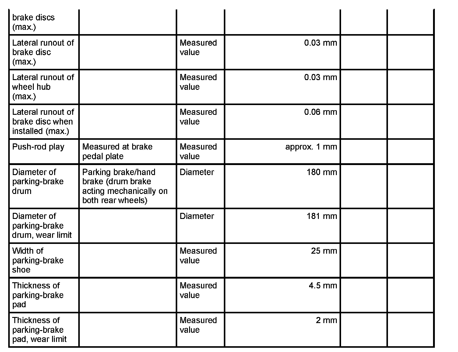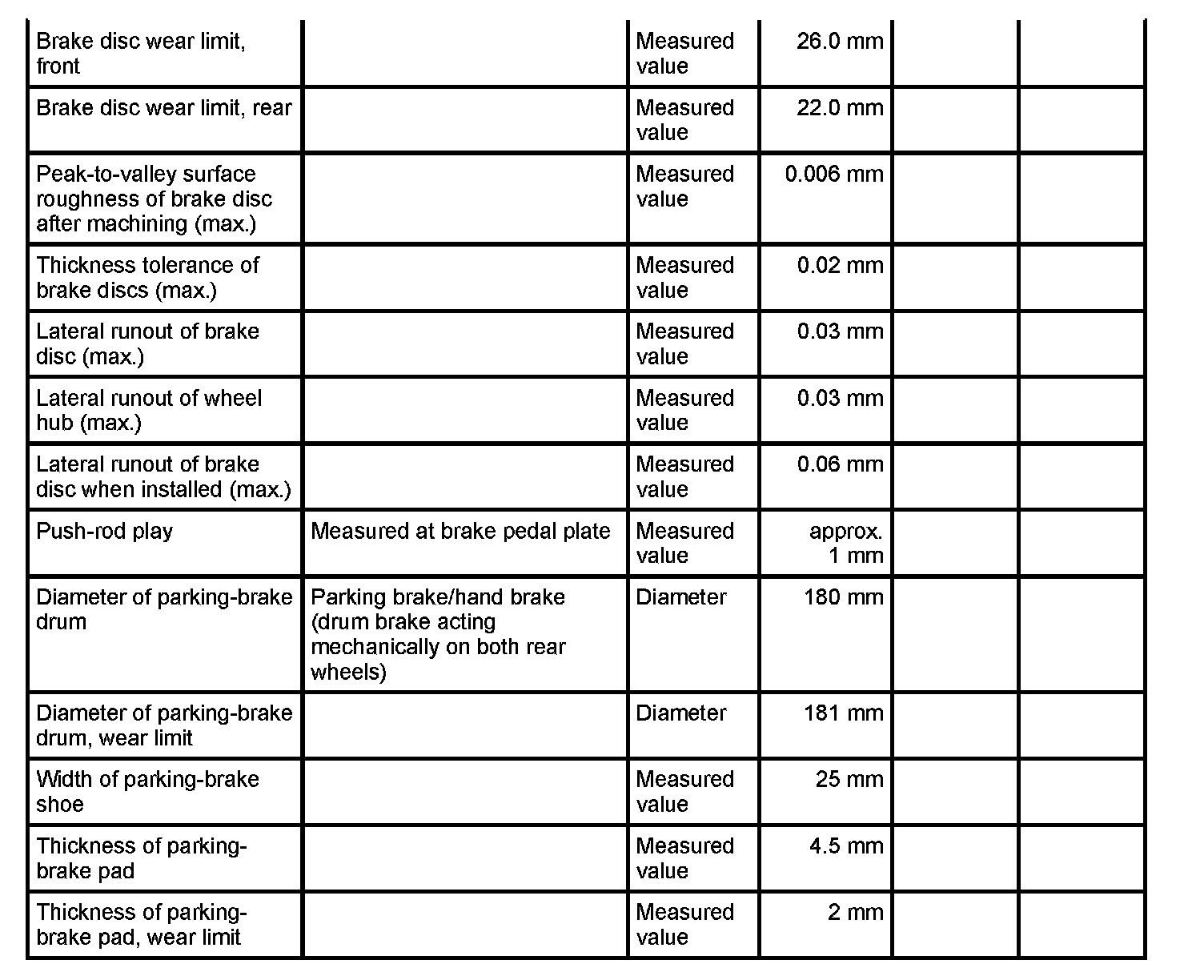 ^ Check brake disc for cracks, minimum thickness, lateral runout, thickness tolerance, flatness and surface roughness.